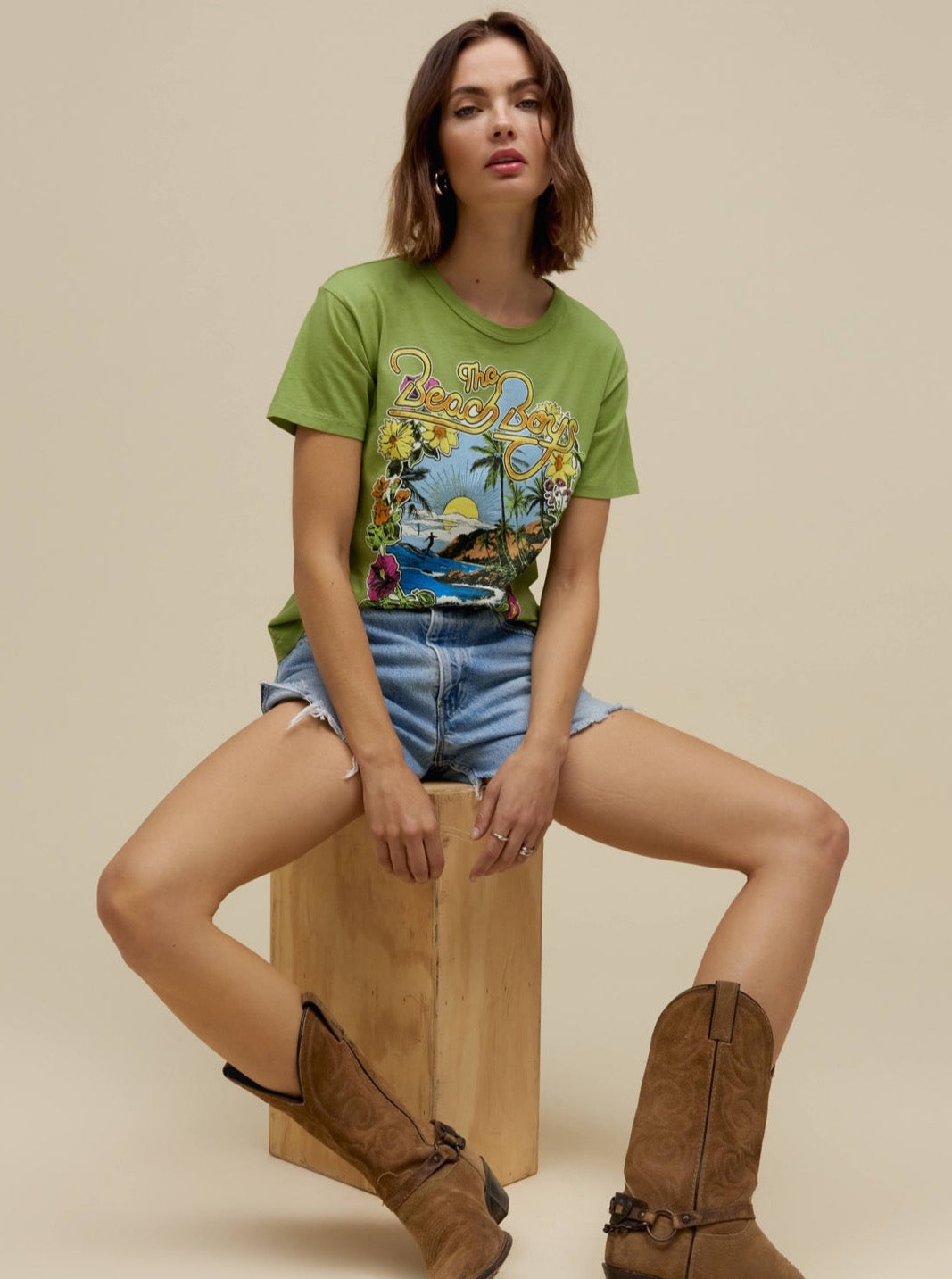 Ride the wave of nostalgia in this graphic representation of a sun-soaked sound and the California energy that was The Beach Boys. Inspired by their 1963 explosive single “Surfin’ USA" and album of the same name, this beach and floral artwork captures the essence of the laid back culture the boys’ brought to life through their top tracks.