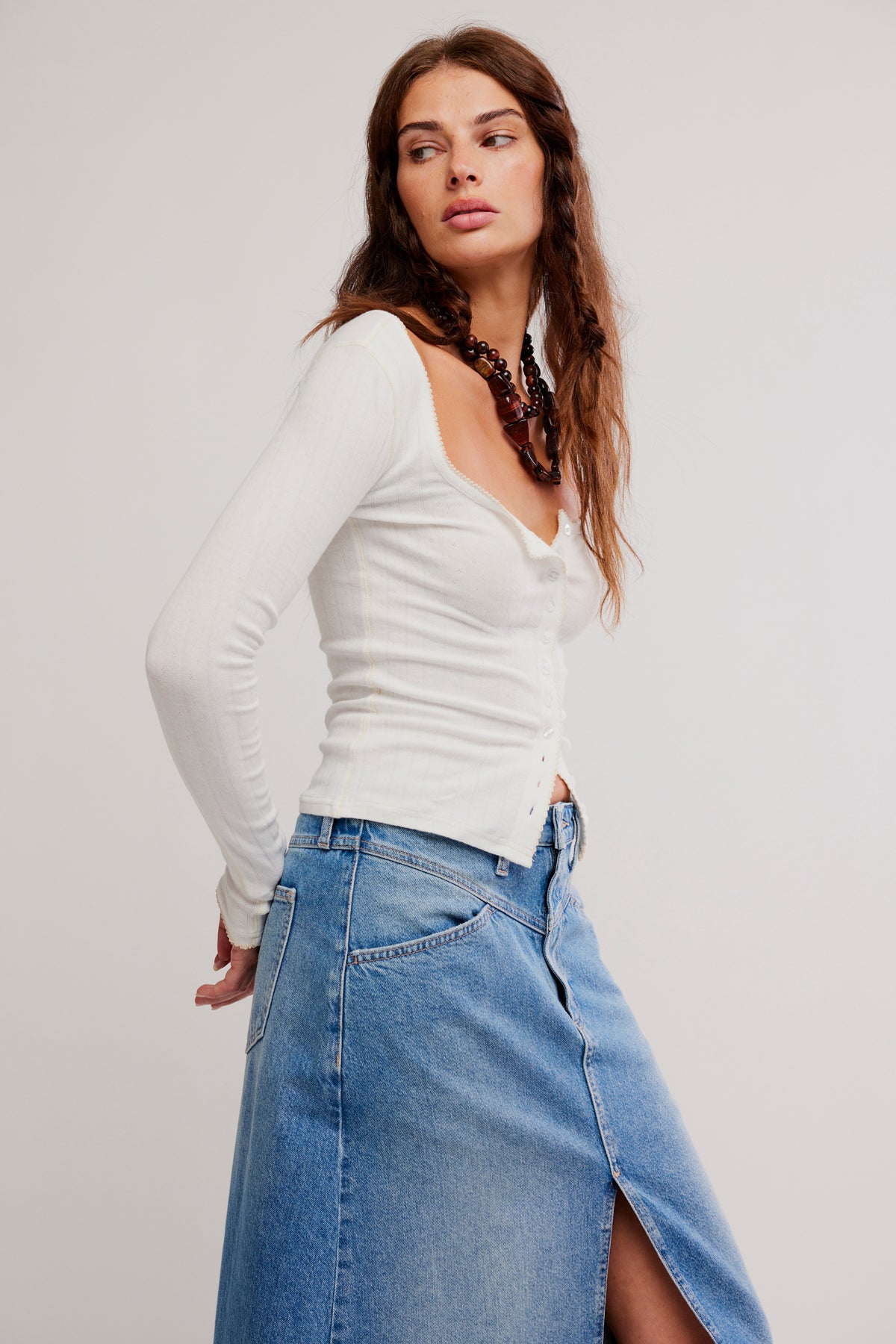 FREE PEOPLE End Game Pointelle Long Sleeve Tee