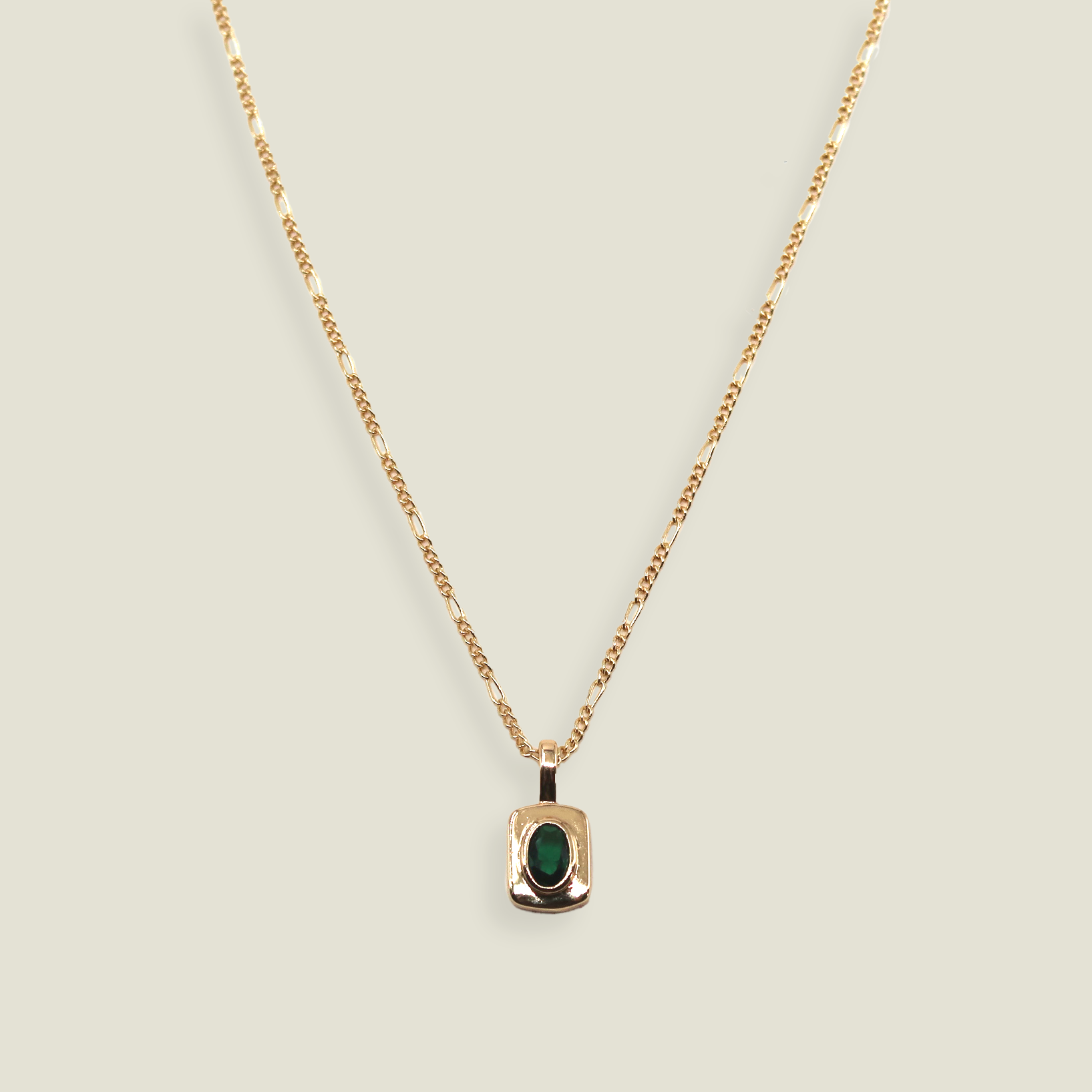 - Material: Gold dipped with our signature 14k gold plating + CZ emerald