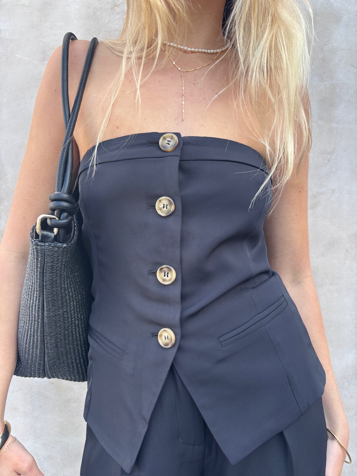KEEN THE LABEL Grainge Buttoned Strapless Top