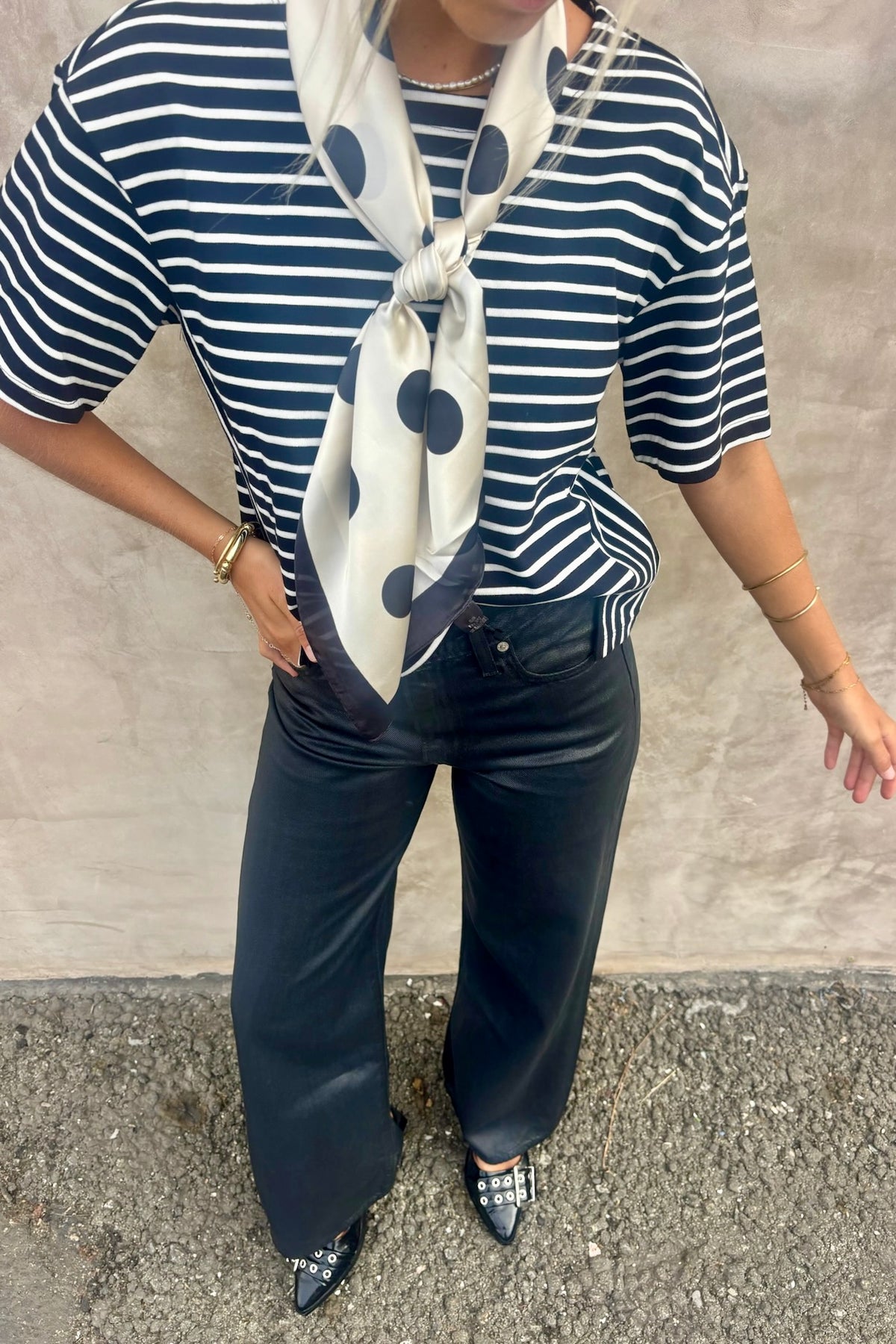 The crisp, horizontal black and white stripes make it effortlessly stylish and a perfect pairing for everything from your favorite jeans to sharp trousers. It's the ultimate foundational piece for any wardrobe.