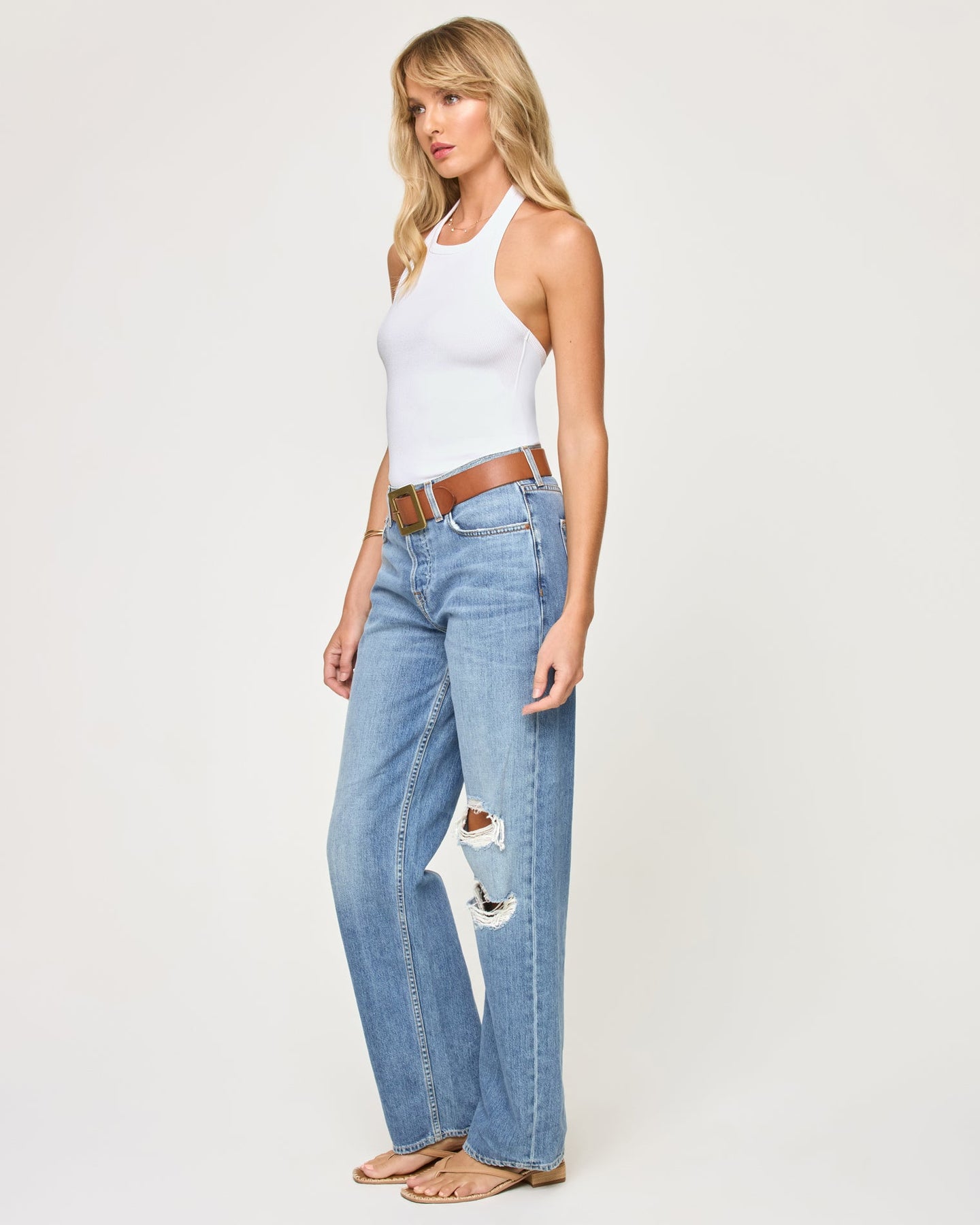 Chic and sexy, the Alyx is not your average tank top. This anything-but-basic fitted staple piece has a halter neckline and (drum roll please)....a shelf bra! Pair this with our Rhodes trousers our your go-to denim for a look that's perfectly casual yet polished.