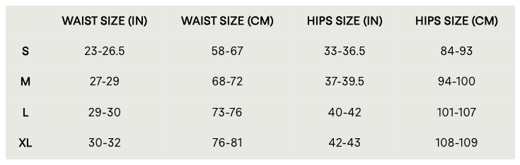 - Model is 5”9”, Bra Size 34B, Bust 32 / 85cm, Waist 24 / 62cm, Hips 33 / 88cm