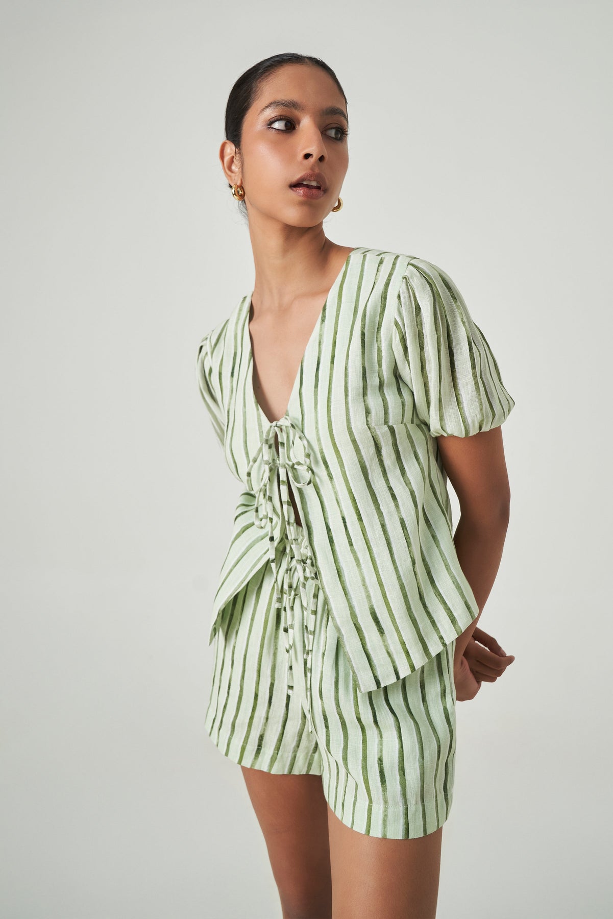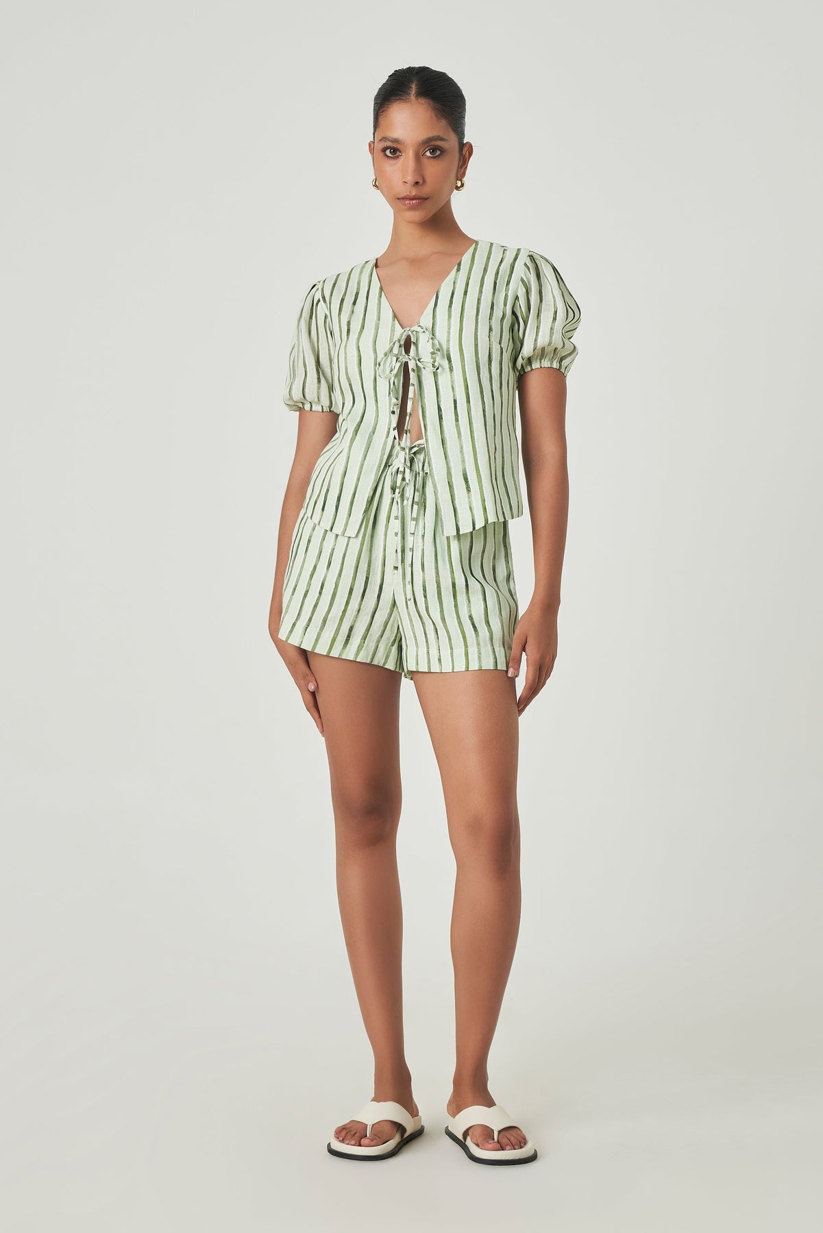 SUMMER AWAY Victoria Stripe Tie-Front Linen Top
