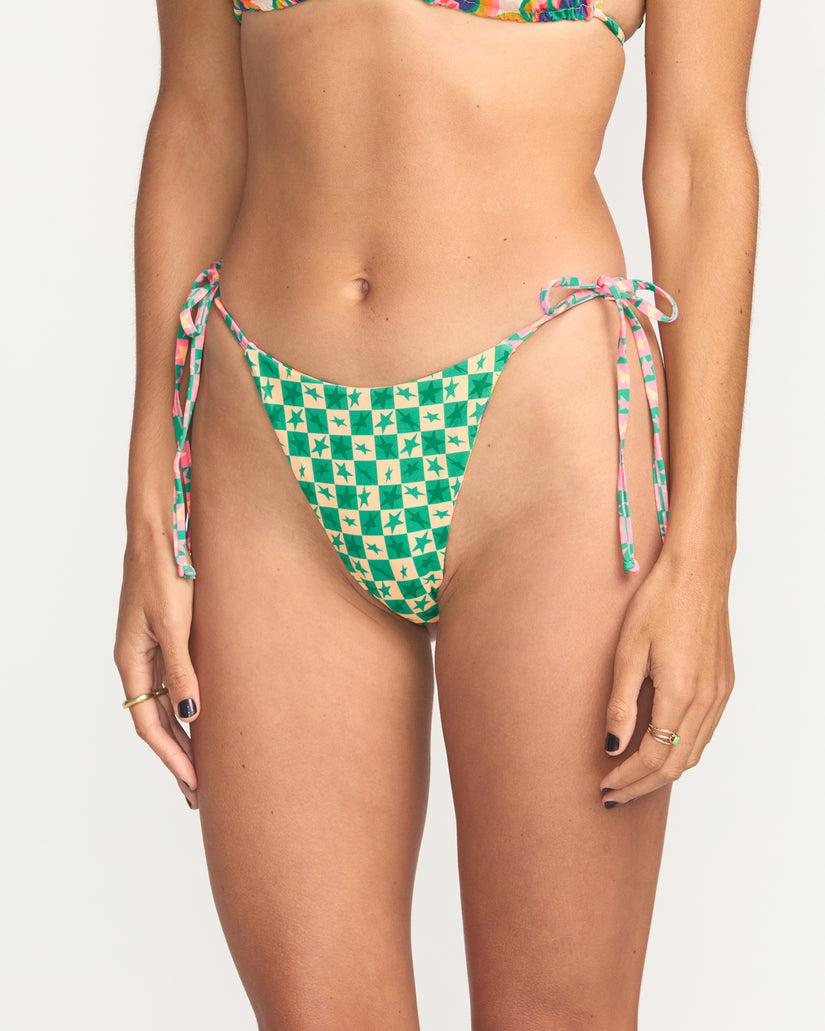 Our Billabong x Mami Wata Reversible Tie-Side bikini bottom offers reversible versatility with a high-cut leg and medium coverage. Tie sides customize the fit; partially recycled nylon / elastane blends swimwear-ready stretch. Featuring bold prints inspired by the native East African violets that grow in the tropical rainforests of Tanzania and Kenya.