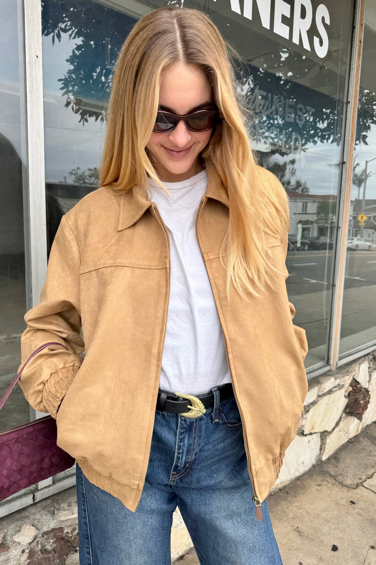 This faux suede bomber jacket is the perfect blend of vintage-inspired style and modern comfort. Featuring a soft, brushed texture and a relaxed silhouette, it offers a timeless "cool-girl" aesthetic that pairs effortlessly with your favorite denim or a casual white tee.