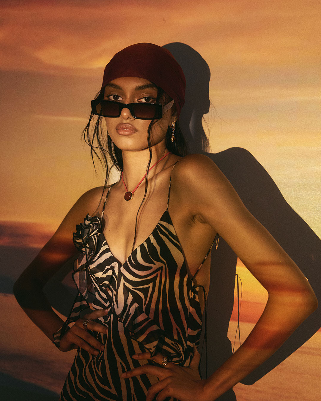 LUV AJ Sunset Stone Cord Necklace - Gold/Red-The Shop Laguna Beach