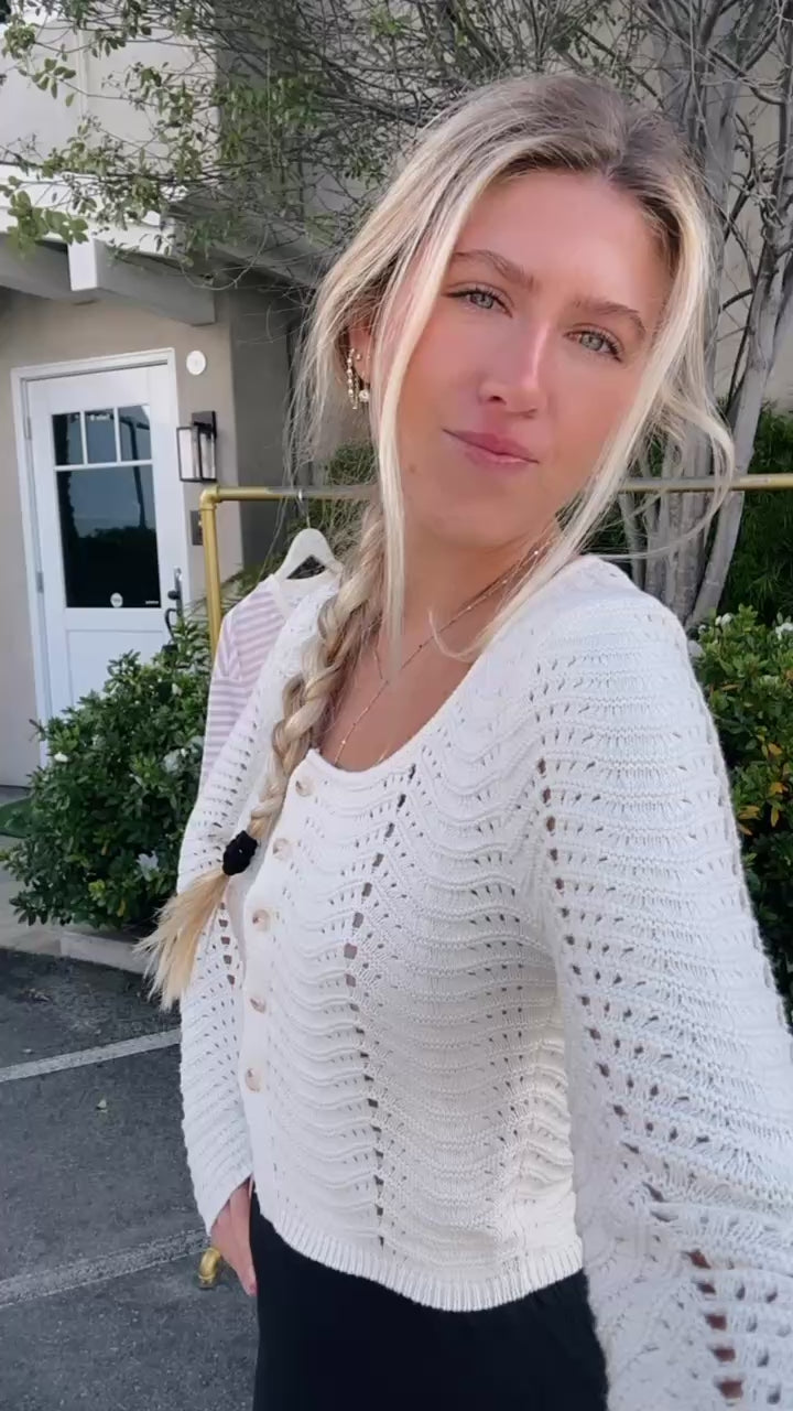 Features: This cardigan features a delicate pointelle design that adds a touch of elegance to any outfit. The square neck offers a modern silhouette, making it an ideal layering piece for both casual and dressy occasions.