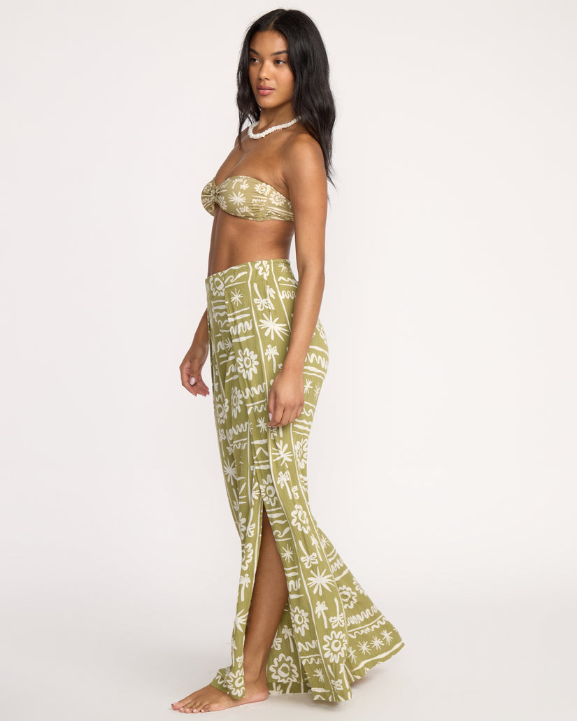 - Elastic at back waistband, split front leg, Inseam: 31"