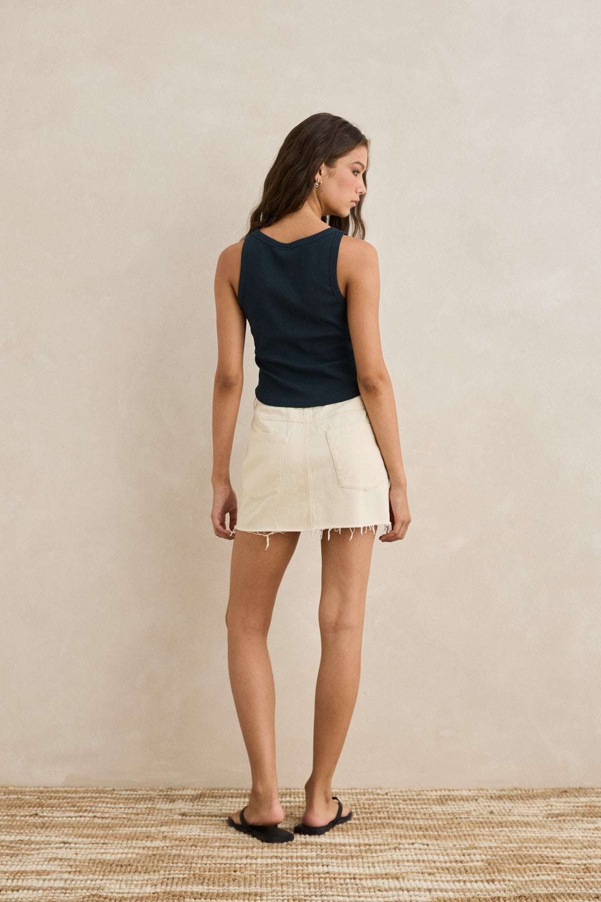 Finished with frayed edging and a high-rise waist, the Prairie Mini Skirt in Natural is made for off-duty styling. An effortless staple with a lived-in feel.